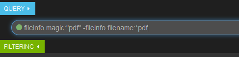 fileinfo.magic:”pdf” -fileinfo.filename:*pdf