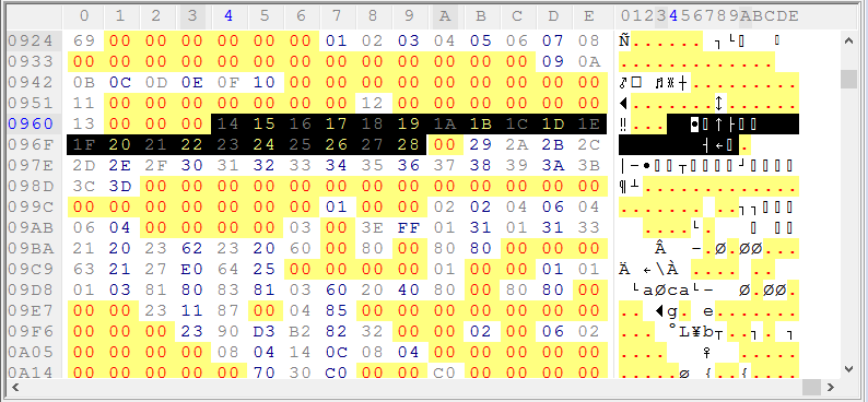 If we go to the ROM’s offset 0x0965 using an Hex Editor, we find out that this is indeed the section responsible for displaying the tiles: