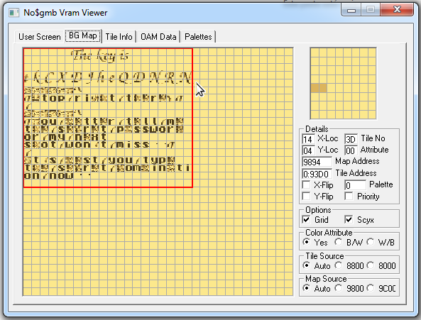 Let’s compare it with the emulator’s BGMAP when displaying the key: