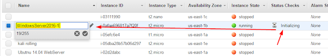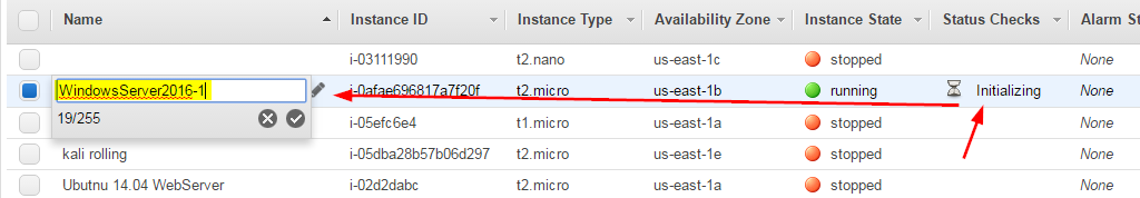 16) Your new instance will say Initializing under Status Checks. It is a good idea to rename it.