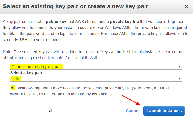 12) If you haven’t created an AWS keypair yet, create one. If you have, you know what to do here.