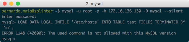 This is where things start to become interesting. As long as the client enables the capability (via –enable-local-infile flag, for example), the file will be read from the local machine running the MySQL client and transferred to the server.