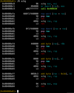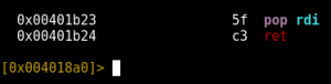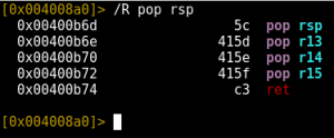 gadget. Let’s see an example of this kind of gadget, and while we’re at it, let’s learn to use radare2 for gadget searching. (Some additional commands and functionality can be seen in this tutorial.)
