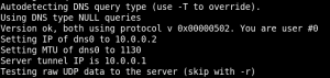 When Iodine is run on the client, the client will establish a DNS interface that resembles the screenshot below.
