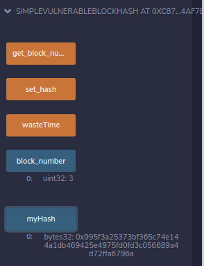 So, we have 2 variables of a block number and a block hash associated with that block number. What’s the big deal. Well let’s walk through this step by step and then play around with the remaining wasteTime function on line 15 to find out.